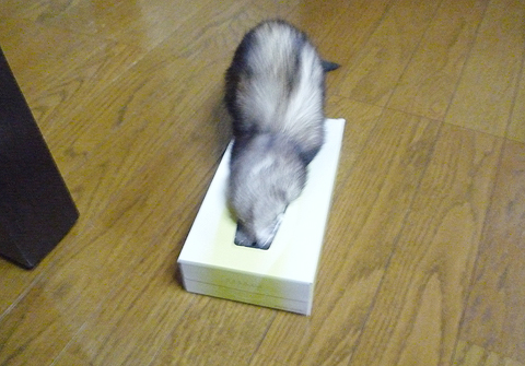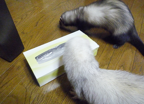 使い終わったティッシュの箱はとてもいい遊び道具です。