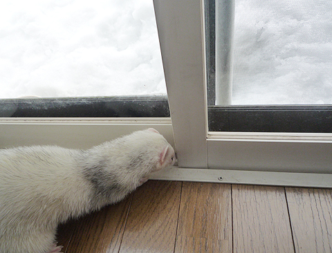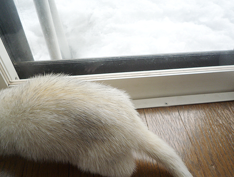 雪がすごいので、ハンモックにもぐり込んだら、予想以上にぬくぬくで気持ちいい。