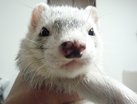 飼い主に胸のあたりを掴まれて持ち上げられてるところです。