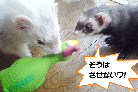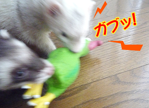 タロウ:「おい、ハル。また一人占めする気だな!?(ガブッ!)」