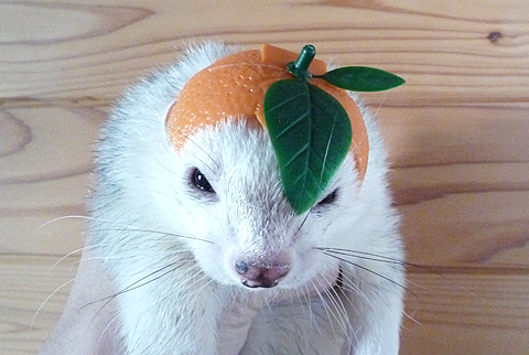 タロウ:「うさみみが間に合わなかったせいか、前から使っているミカン帽子です。」