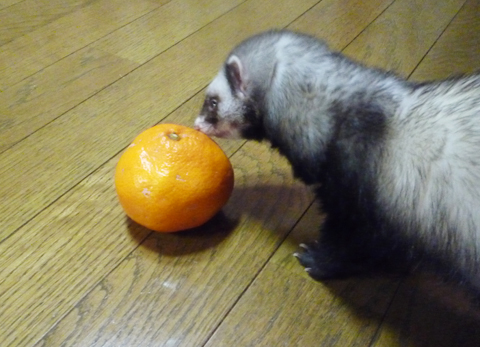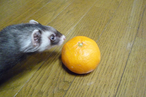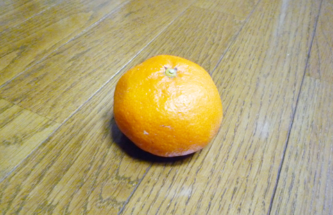おやっ?床にミカンが…。